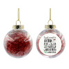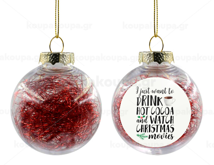 I just want to drink hot cocoa and watch christmas movies, Στολίδι Χριστουγεννιάτικη μπάλα δένδρου διάφανη με κόκκινο γέμισμα 8cm