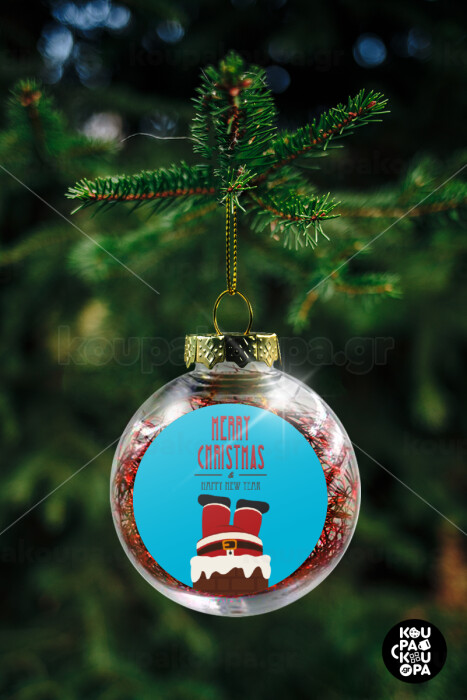 Merry christmas chimney, Στολίδι Χριστουγεννιάτικη μπάλα δένδρου διάφανη με κόκκινο γέμισμα 8cm