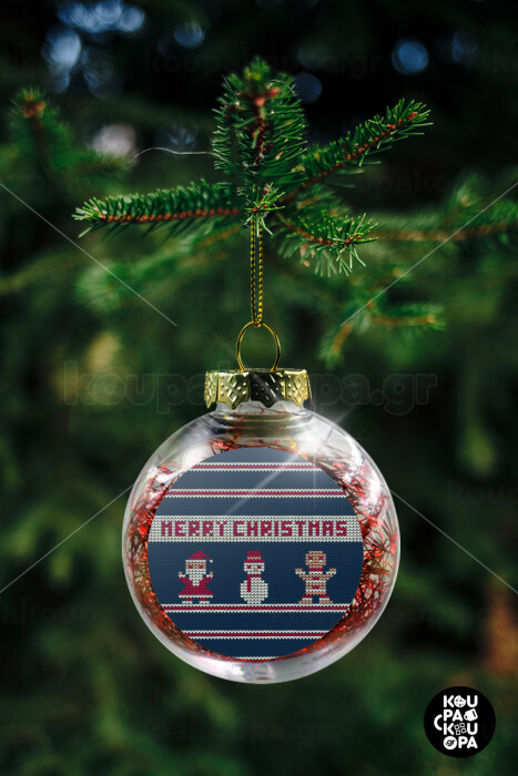 Merry christmas knitted, Στολίδι Χριστουγεννιάτικη μπάλα δένδρου διάφανη με κόκκινο γέμισμα 8cm