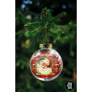 Santa Claus, Στολίδι Χριστουγεννιάτικη μπάλα δένδρου διάφανη με κόκκινο γέμισμα 8cm