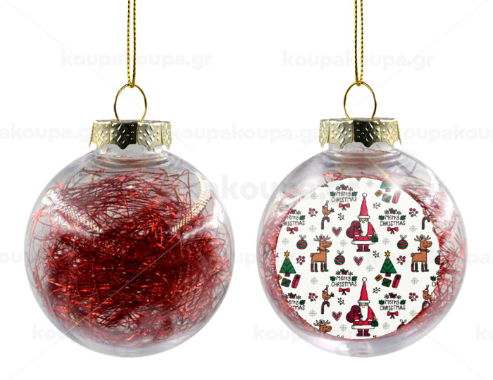 Santas, Deers & Trees, Στολίδι Χριστουγεννιάτικη μπάλα δένδρου διάφανη με κόκκινο γέμισμα 8cm