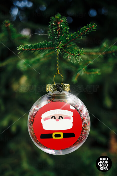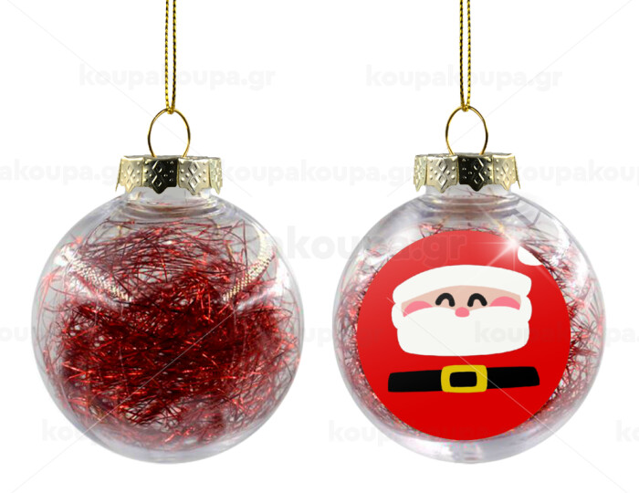 Simple Santa, Στολίδι Χριστουγεννιάτικη μπάλα δένδρου διάφανη με κόκκινο γέμισμα 8cm