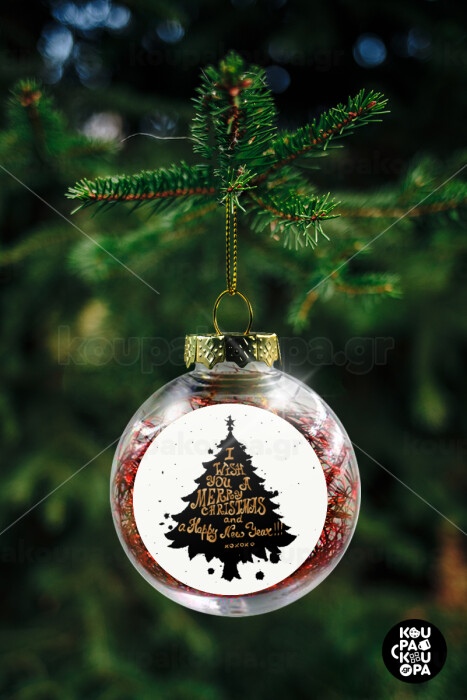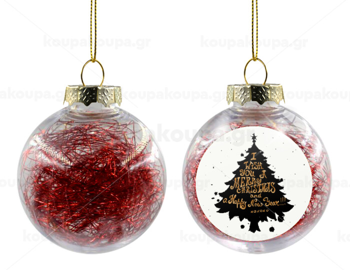 Tree, i wish you a merry christmas and a Happy New Year!!! xoxoxo, Στολίδι Χριστουγεννιάτικη μπάλα δένδρου διάφανη με κόκκινο γέμισμα 8cm