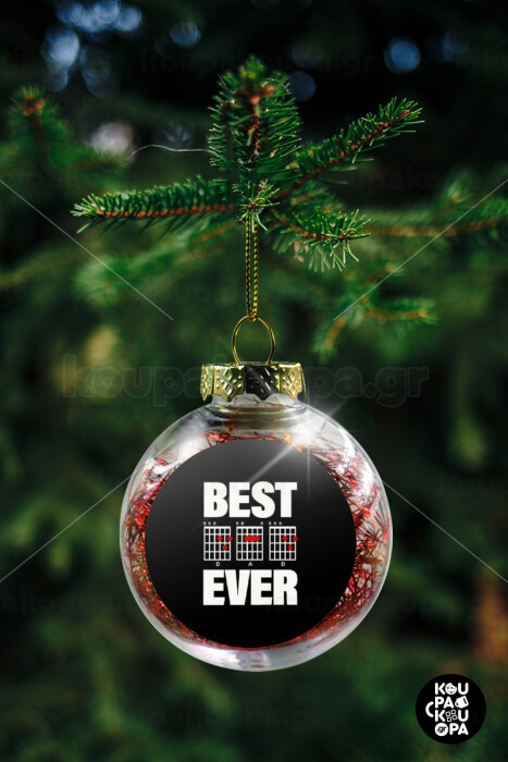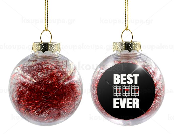 Best DAD Ever συγχορδίες κιθάρας, Στολίδι Χριστουγεννιάτικη μπάλα δένδρου διάφανη με κόκκινο γέμισμα 8cm