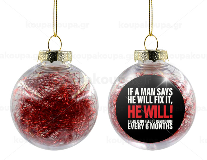 If a man says he will fix it He will There is no need to remind him every 6 months, Στολίδι Χριστουγεννιάτικη μπάλα δένδρου διάφανη με κόκκινο γέμισμα 8cm