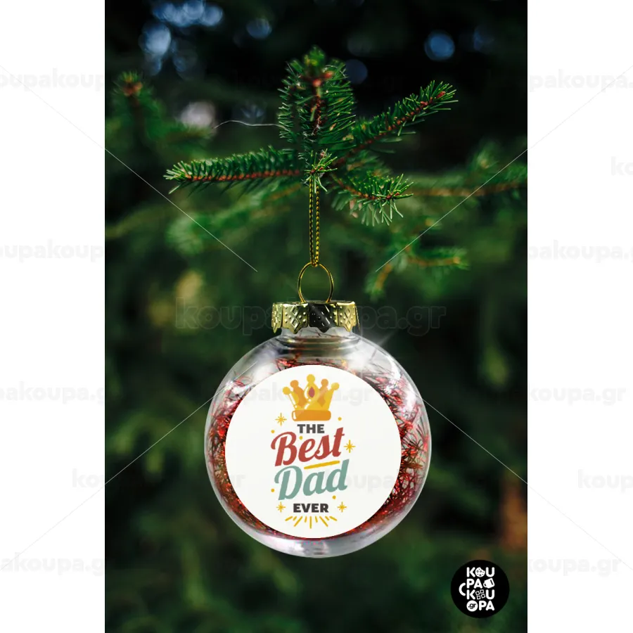 The Best DAD ever, Στολίδι Χριστουγεννιάτικη μπάλα δένδρου διάφανη με κόκκινο γέμισμα 8cm
