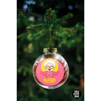 Στην καλύτερη Super γιαγιά μου!, Στολίδι Χριστουγεννιάτικη μπάλα δένδρου διάφανη με κόκκινο γέμισμα 8cm