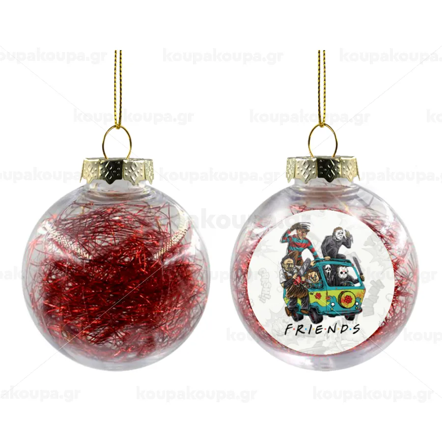 Halloween Friends Scooby Doo, Στολίδι Χριστουγεννιάτικη μπάλα δένδρου διάφανη με κόκκινο γέμισμα 8cm