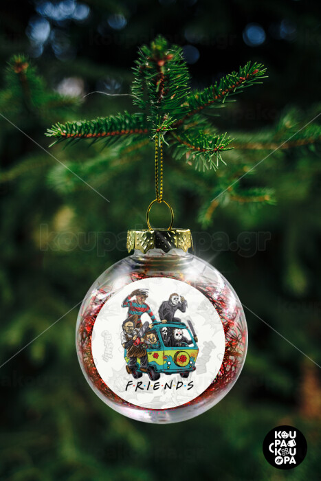 Halloween Friends Scooby Doo, Στολίδι Χριστουγεννιάτικη μπάλα δένδρου διάφανη με κόκκινο γέμισμα 8cm