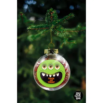 Halloween trick or treat 3 eyes monster, Στολίδι Χριστουγεννιάτικη μπάλα δένδρου διάφανη με κόκκινο γέμισμα 8cm
