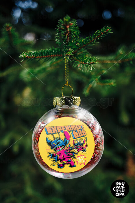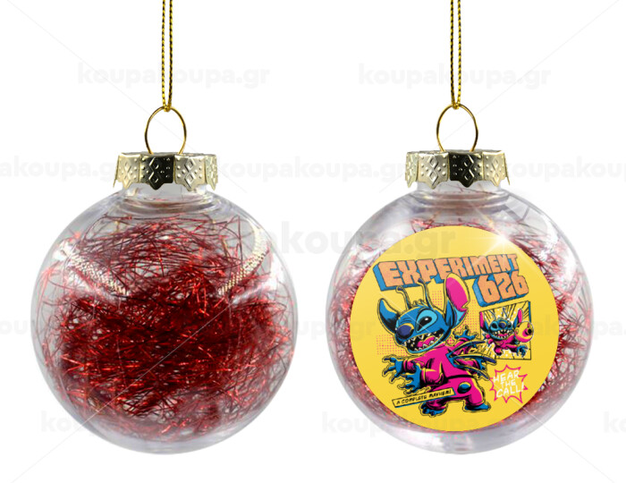 Stitch Experiment 626, Στολίδι Χριστουγεννιάτικη μπάλα δένδρου διάφανη με κόκκινο γέμισμα 8cm