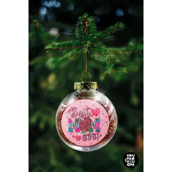 Best mom ever Mother's Day pink, Στολίδι Χριστουγεννιάτικη μπάλα δένδρου διάφανη με κόκκινο γέμισμα 8cm