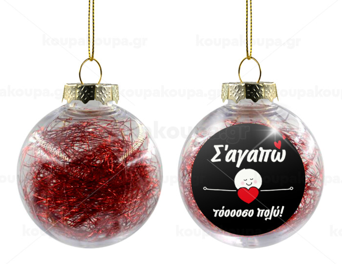 Σ΄αγαπώ τόοοοσο πολύ (Κορίτσι)!!!, Στολίδι Χριστουγεννιάτικη μπάλα δένδρου διάφανη με κόκκινο γέμισμα 8cm