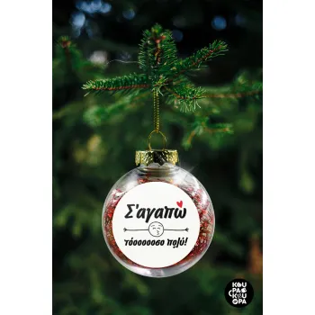 Σ΄ αγαπώ τόοοοοοσο πολύ!!!, Στολίδι Χριστουγεννιάτικη μπάλα δένδρου διάφανη με κόκκινο γέμισμα 8cm