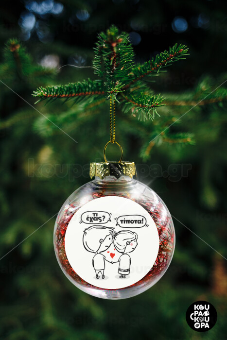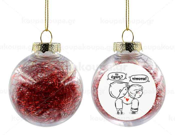 Τι έχεις? Τίποτα!, Στολίδι Χριστουγεννιάτικη μπάλα δένδρου διάφανη με κόκκινο γέμισμα 8cm