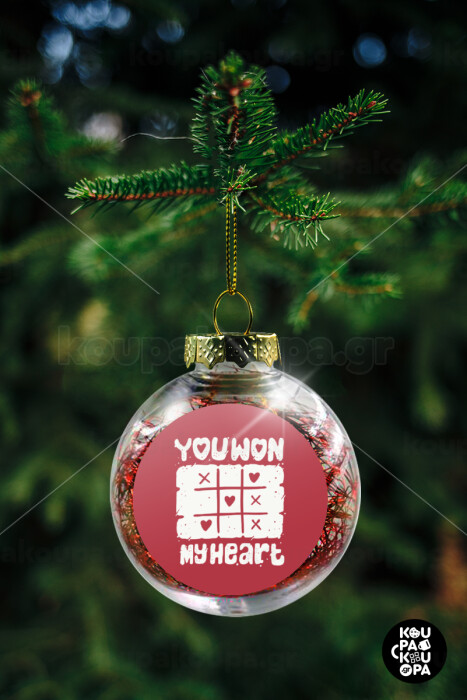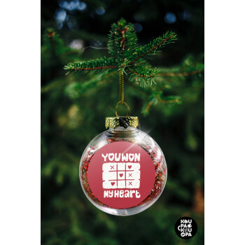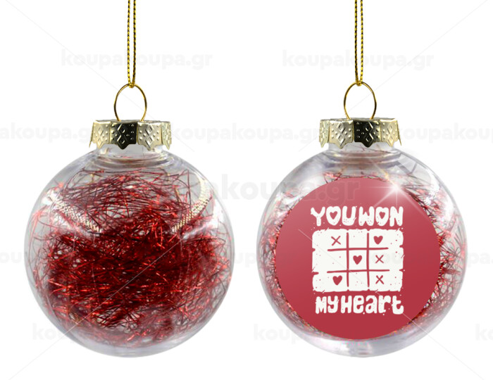 Τρίλιζα you won my heart, Στολίδι Χριστουγεννιάτικη μπάλα δένδρου διάφανη με κόκκινο γέμισμα 8cm