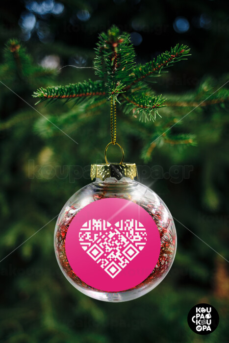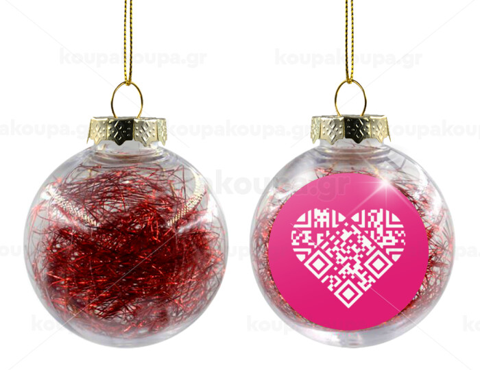 Heart hidden MSG, try me!!!, Στολίδι Χριστουγεννιάτικη μπάλα δένδρου διάφανη με κόκκινο γέμισμα 8cm