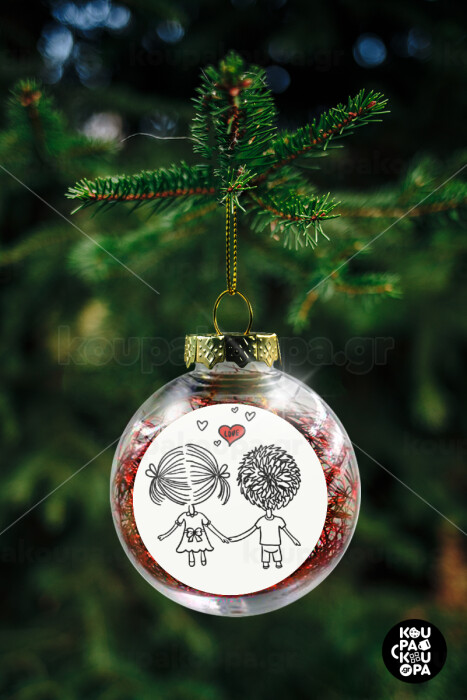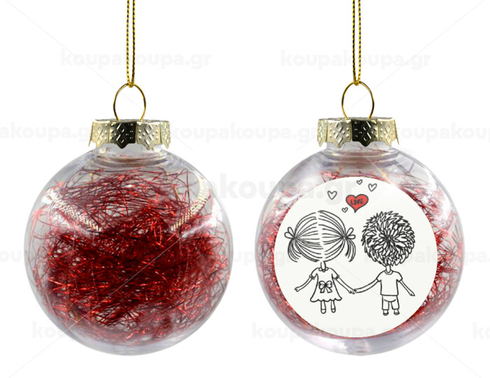 Hold my hand for ever, Στολίδι Χριστουγεννιάτικη μπάλα δένδρου διάφανη με κόκκινο γέμισμα 8cm
