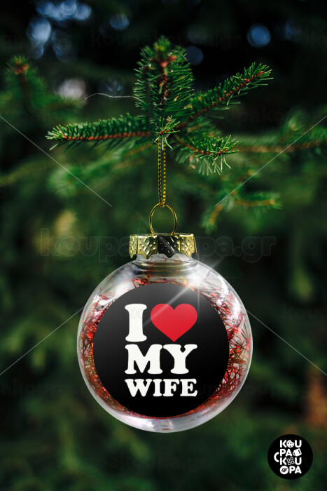 I Love my Wife, Στολίδι Χριστουγεννιάτικη μπάλα δένδρου διάφανη με κόκκινο γέμισμα 8cm