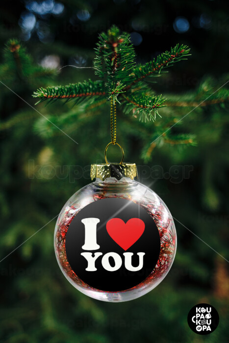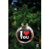 I LOVE YOU, Στολίδι Χριστουγεννιάτικη μπάλα δένδρου διάφανη με κόκκινο γέμισμα 8cm