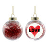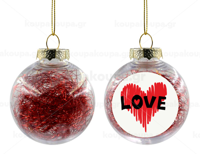 I Love You red heart, Στολίδι Χριστουγεννιάτικη μπάλα δένδρου διάφανη με κόκκινο γέμισμα 8cm