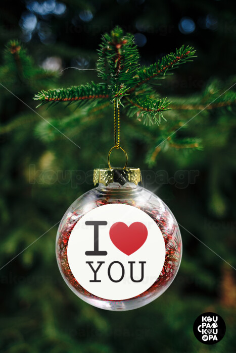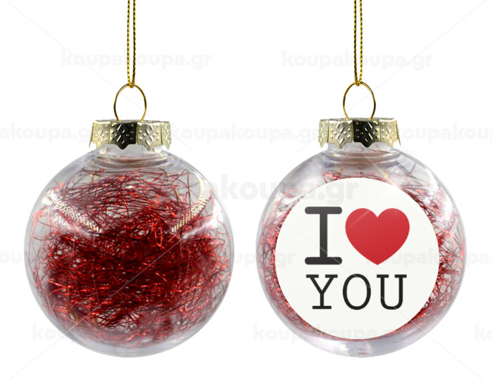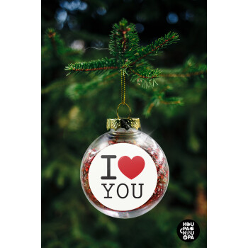 I Love you classic, Στολίδι Χριστουγεννιάτικη μπάλα δένδρου διάφανη με κόκκινο γέμισμα 8cm