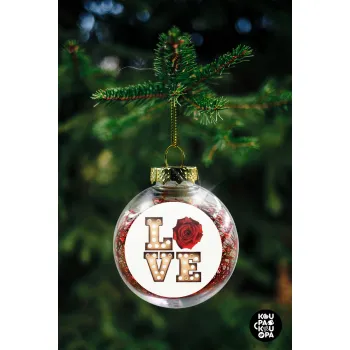 Love lights and roses, Στολίδι Χριστουγεννιάτικη μπάλα δένδρου διάφανη με κόκκινο γέμισμα 8cm