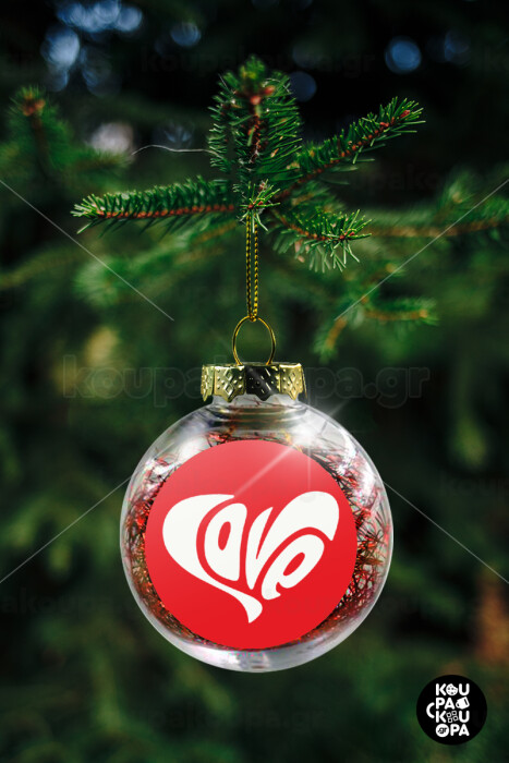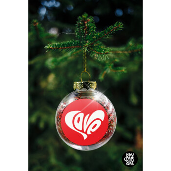 Love, Στολίδι Χριστουγεννιάτικη μπάλα δένδρου διάφανη με κόκκινο γέμισμα 8cm