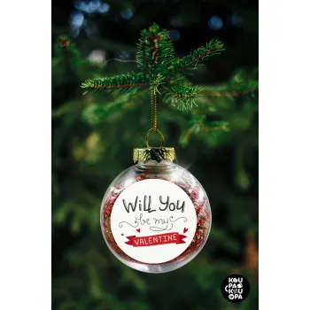 Will you be my Valentine???, Στολίδι Χριστουγεννιάτικη μπάλα δένδρου διάφανη με κόκκινο γέμισμα 8cm