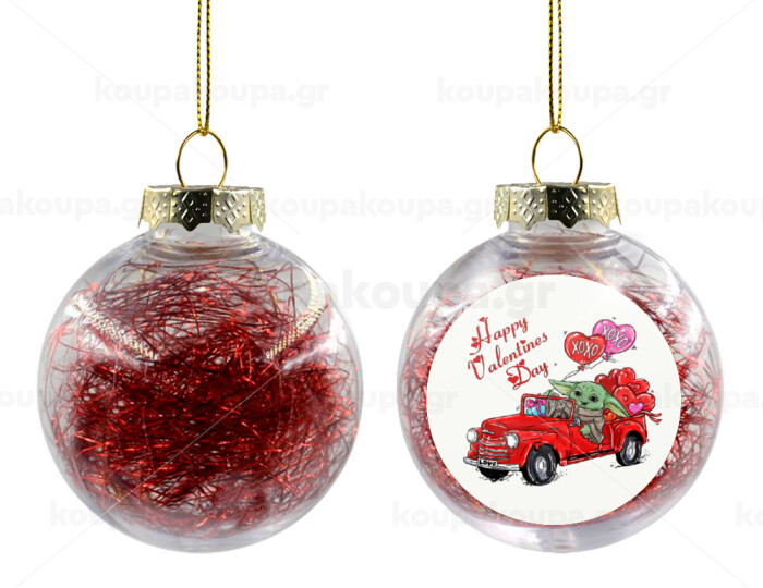 Yoda, happy valentines day (xoxo), Στολίδι Χριστουγεννιάτικη μπάλα δένδρου διάφανη με κόκκινο γέμισμα 8cm