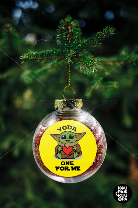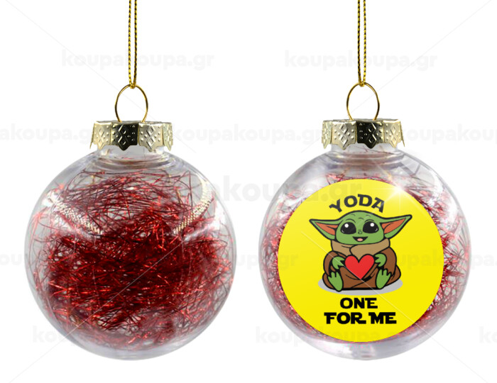 Yoda, one for me , Στολίδι Χριστουγεννιάτικη μπάλα δένδρου διάφανη με κόκκινο γέμισμα 8cm