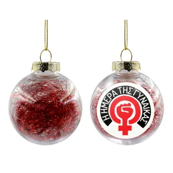 Ημέρα της γυναίκας, Στολίδι Χριστουγεννιάτικη μπάλα δένδρου διάφανη με κόκκινο γέμισμα 8cm