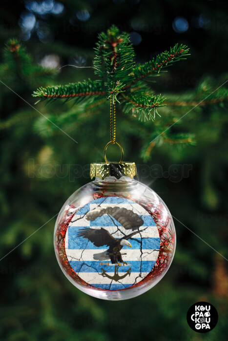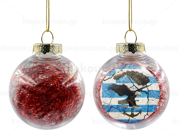 Hellas army αετός, Στολίδι Χριστουγεννιάτικη μπάλα δένδρου διάφανη με κόκκινο γέμισμα 8cm