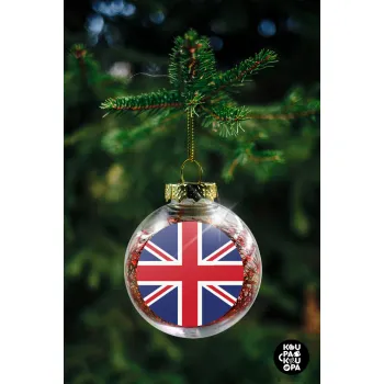 Σημαία Αγγλίας UK, Στολίδι Χριστουγεννιάτικη μπάλα δένδρου διάφανη με κόκκινο γέμισμα 8cm