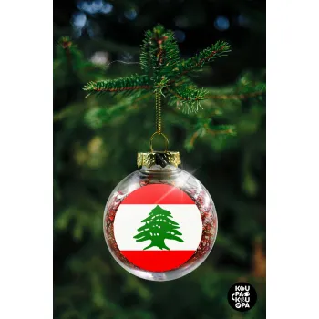 Lebanon flag, Στολίδι Χριστουγεννιάτικη μπάλα δένδρου διάφανη με κόκκινο γέμισμα 8cm