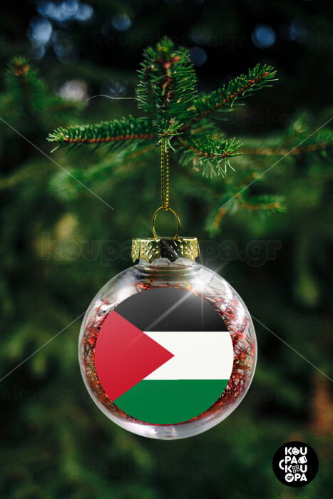Σημαία Παλαιστίνης, Στολίδι Χριστουγεννιάτικη μπάλα δένδρου διάφανη με κόκκινο γέμισμα 8cm