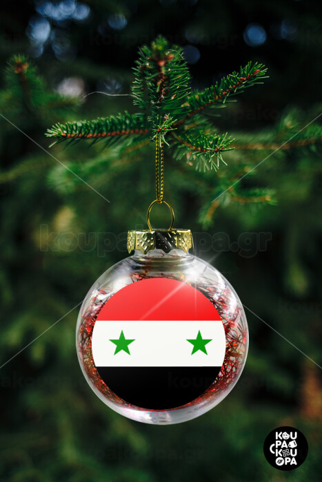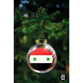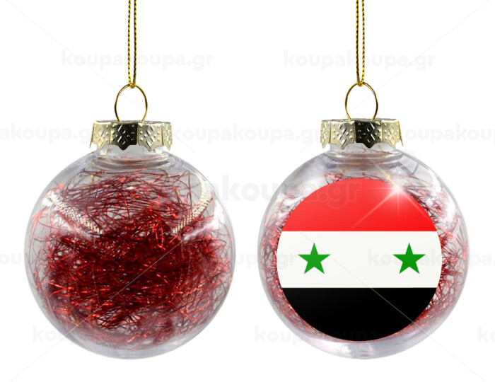 Syria flag, Στολίδι Χριστουγεννιάτικη μπάλα δένδρου διάφανη με κόκκινο γέμισμα 8cm