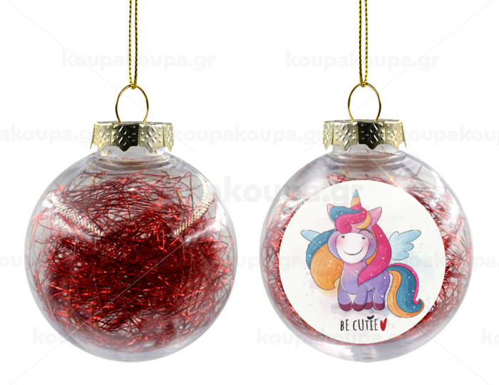 Μονόκερος, Στολίδι Χριστουγεννιάτικη μπάλα δένδρου διάφανη με κόκκινο γέμισμα 8cm