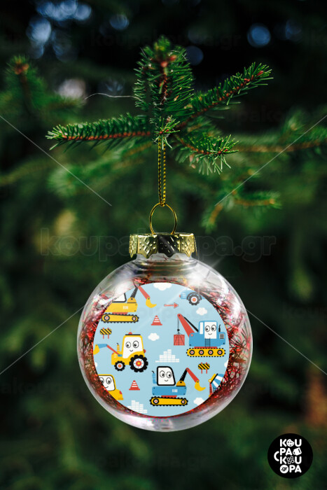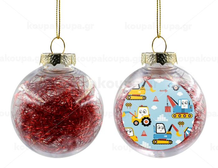 Hand drawing building truck, Στολίδι Χριστουγεννιάτικη μπάλα δένδρου διάφανη με κόκκινο γέμισμα 8cm