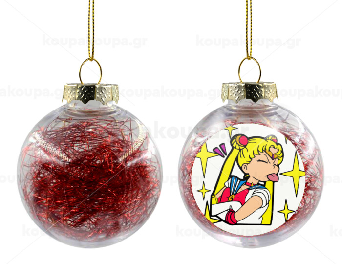 Sailor Moon, Στολίδι Χριστουγεννιάτικη μπάλα δένδρου διάφανη με κόκκινο γέμισμα 8cm