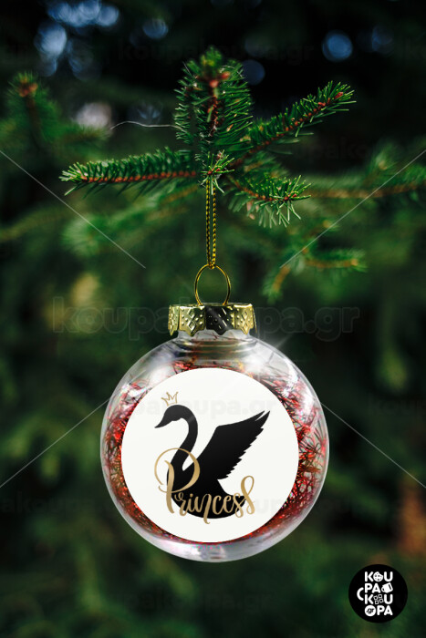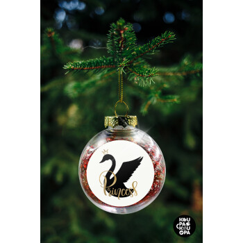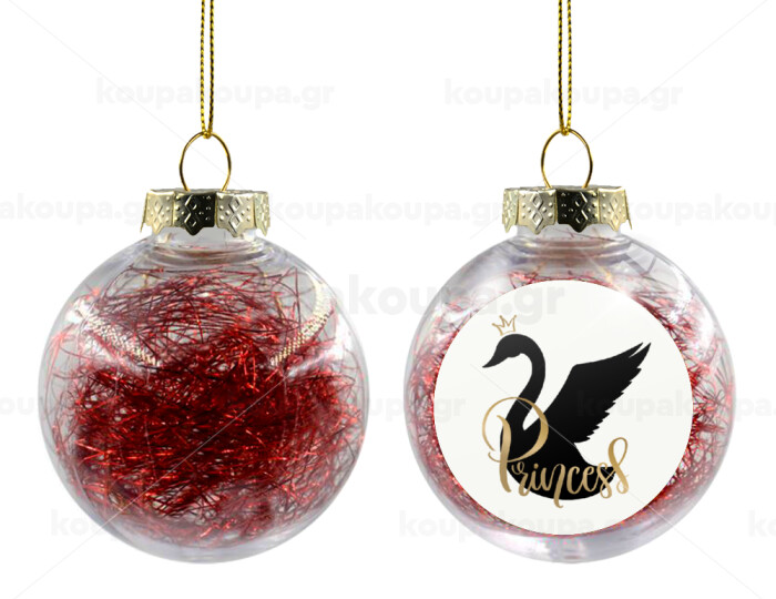 Swan Princess, Στολίδι Χριστουγεννιάτικη μπάλα δένδρου διάφανη με κόκκινο γέμισμα 8cm