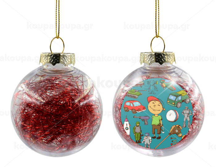 Toys Boy, Στολίδι Χριστουγεννιάτικη μπάλα δένδρου διάφανη με κόκκινο γέμισμα 8cm