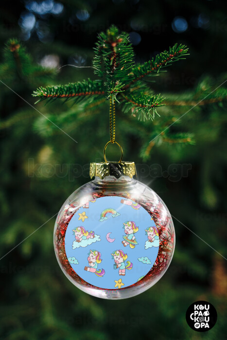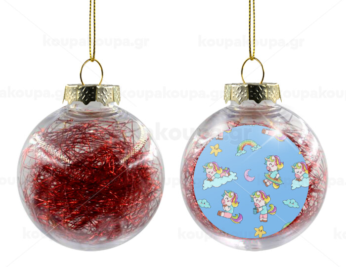 Unicorn pattern, Στολίδι Χριστουγεννιάτικη μπάλα δένδρου διάφανη με κόκκινο γέμισμα 8cm