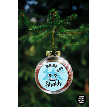 Baby Shark (boy), Στολίδι Χριστουγεννιάτικη μπάλα δένδρου διάφανη με κόκκινο γέμισμα 8cm