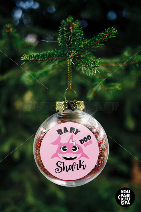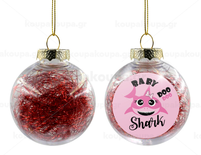 Baby Shark (girl), Στολίδι Χριστουγεννιάτικη μπάλα δένδρου διάφανη με κόκκινο γέμισμα 8cm