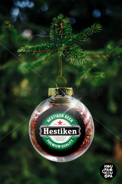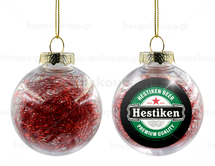 Hestiken Beer, Στολίδι Χριστουγεννιάτικη μπάλα δένδρου διάφανη με κόκκινο γέμισμα 8cm