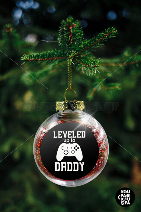Leveled to Daddy, Στολίδι Χριστουγεννιάτικη μπάλα δένδρου διάφανη με κόκκινο γέμισμα 8cm