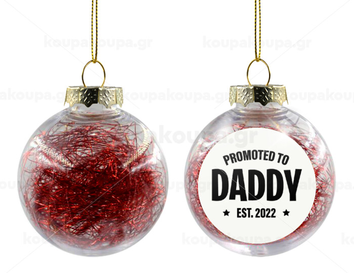 Promoted to Daddy, Στολίδι Χριστουγεννιάτικη μπάλα δένδρου διάφανη με κόκκινο γέμισμα 8cm