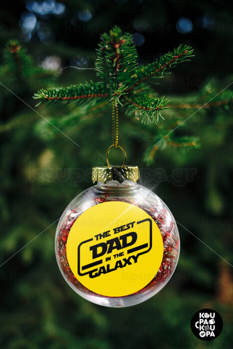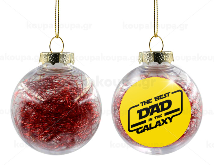 The Best DAD in the Galaxy, Στολίδι Χριστουγεννιάτικη μπάλα δένδρου διάφανη με κόκκινο γέμισμα 8cm