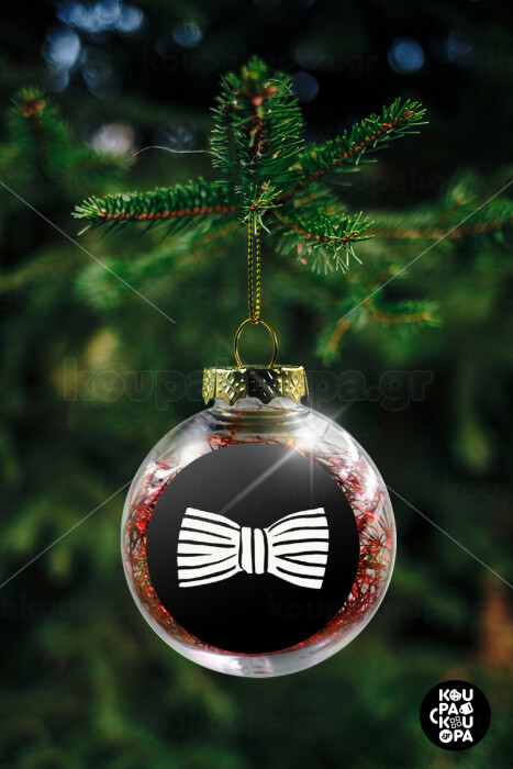 Bow tie, Στολίδι Χριστουγεννιάτικη μπάλα δένδρου διάφανη με κόκκινο γέμισμα 8cm